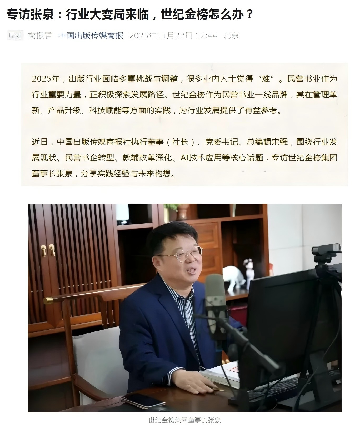 中国出版传媒商报专访张泉董事长:行业大变局来临,世纪金榜怎么办?